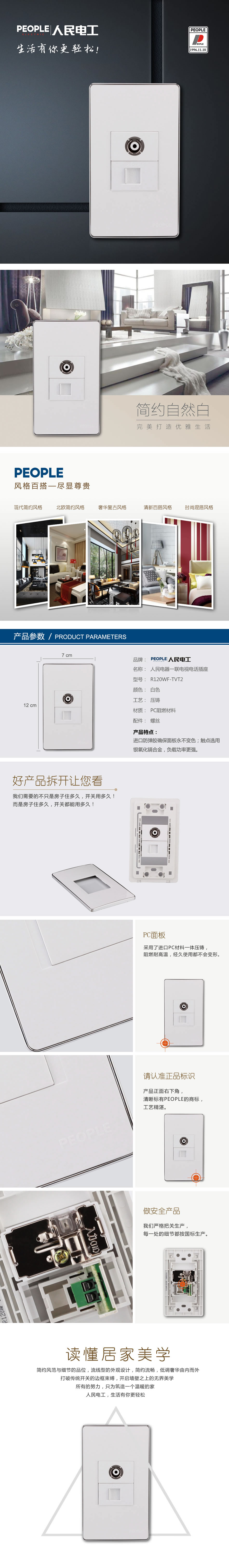 型号:R120WF-TVT2 一联电视电话插座;颜色:白色