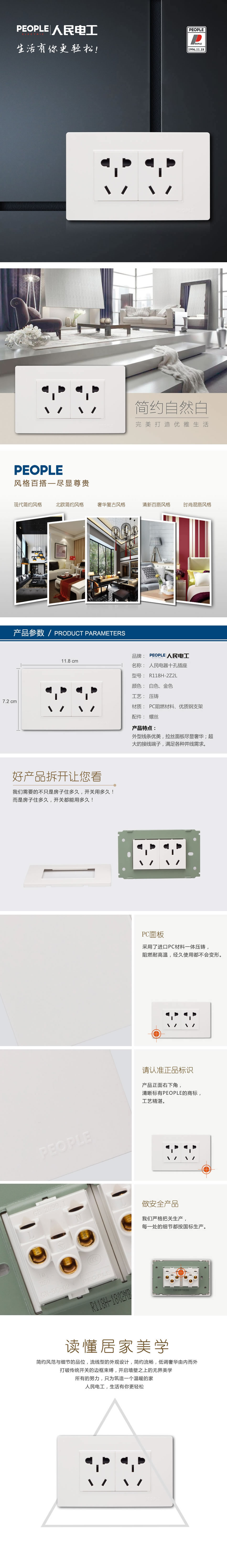 型号:R118H-2Z2L 十孔插座;颜色:白色,金色