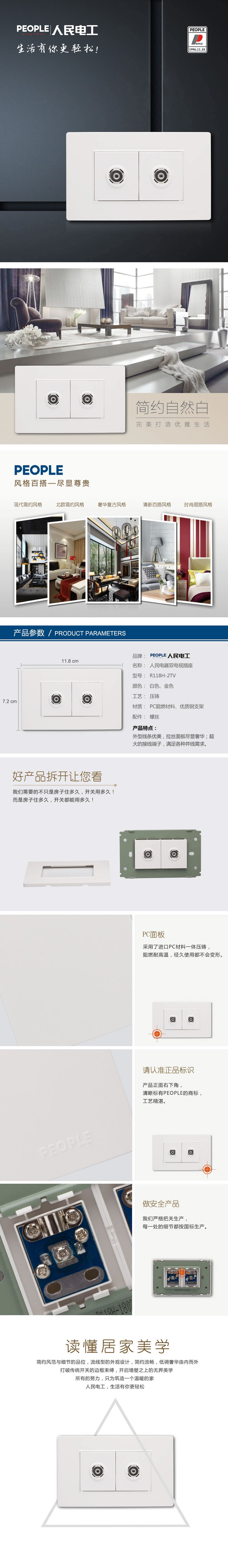 型号:R118H-2TV 双视频插座;颜色:白色,金色