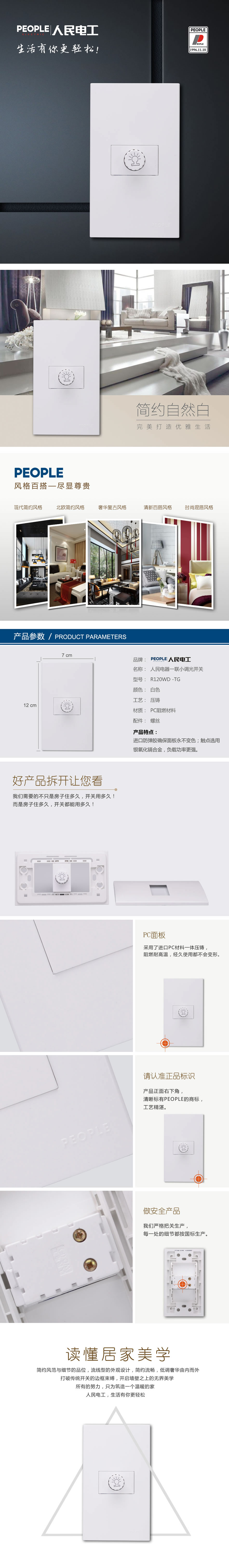 型号:R120WD-TG 一联小调光开关;颜色:白色