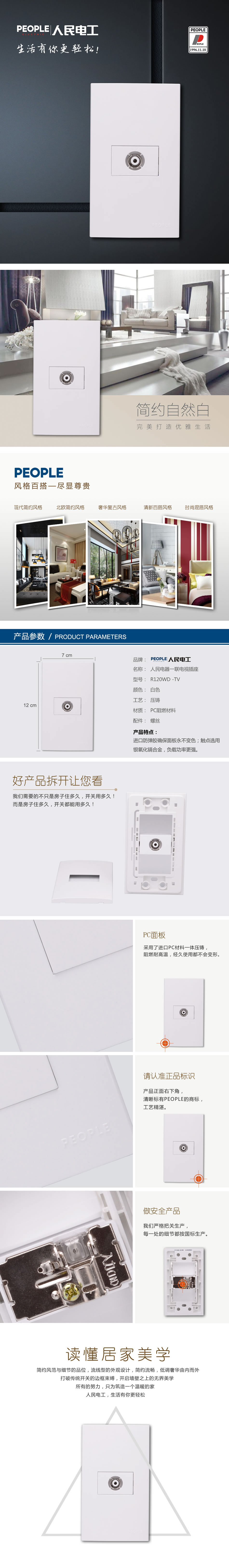 型号:R120WD-TV 一联电视插座;颜色:白色