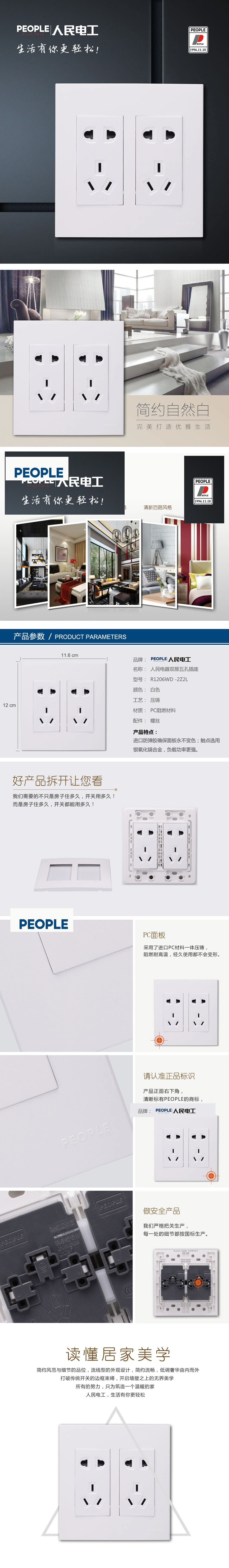 型号:R120WD-2Z2L 双排五孔插座;颜色:白色