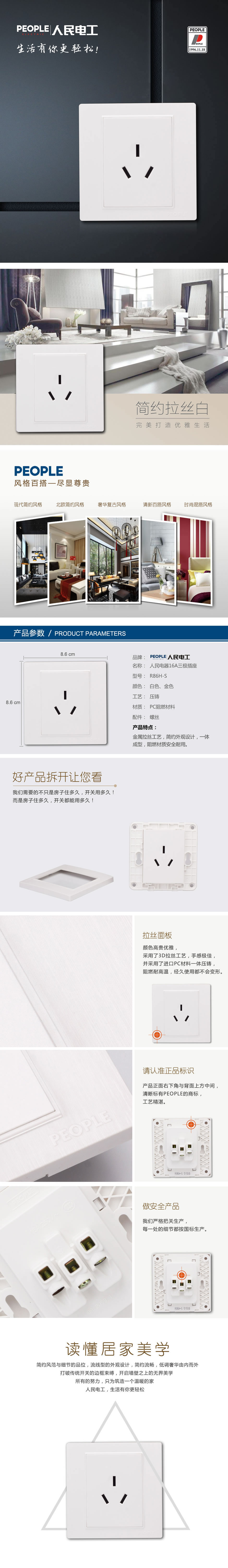 型号:R86H-S 16A三极插座;颜色:白色、金色