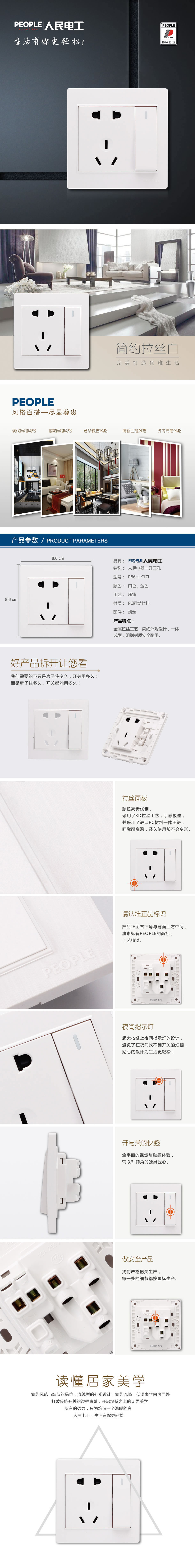 型号:R86H-K1ZL(单控)、R86H-K2ZL(双控) 一联带五孔插座;颜色:白色、金色