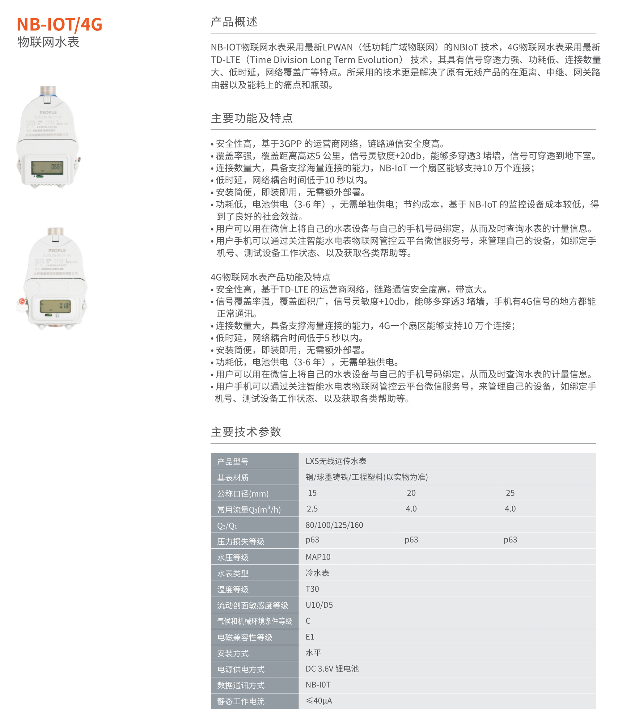> NB-IOT/4G物联网水表、LXS无线远传水表