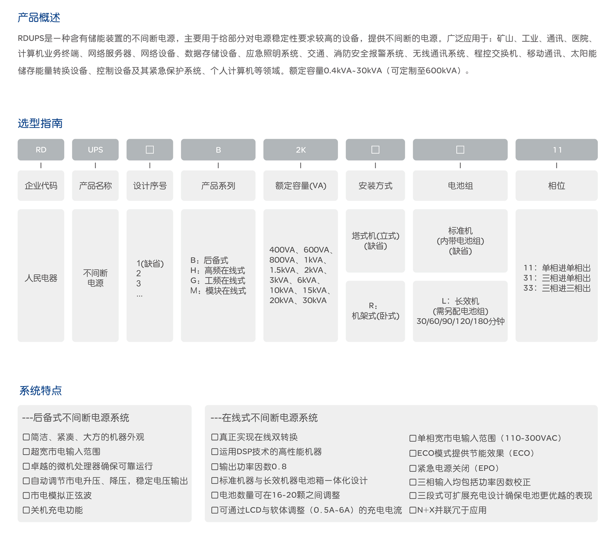 RDUPS是一种含有储能装置的不间断电源,主要用于给部分对电源稳定性要求较高的设备,提供不间断的电源。广泛应用于:矿山、工业、通讯、医院计算机业务终端、网络服务器、网络设备、数据存储设备、应急照明系统、交通、消防安全报警系统、无线通讯系统、程控交换机、移动通讯、太阳能诸存能量转换设备、控制设备及其紧急保护系统、个人计算机等领域。额定容量0.4KVA30KVA (可定制至600KVA)。