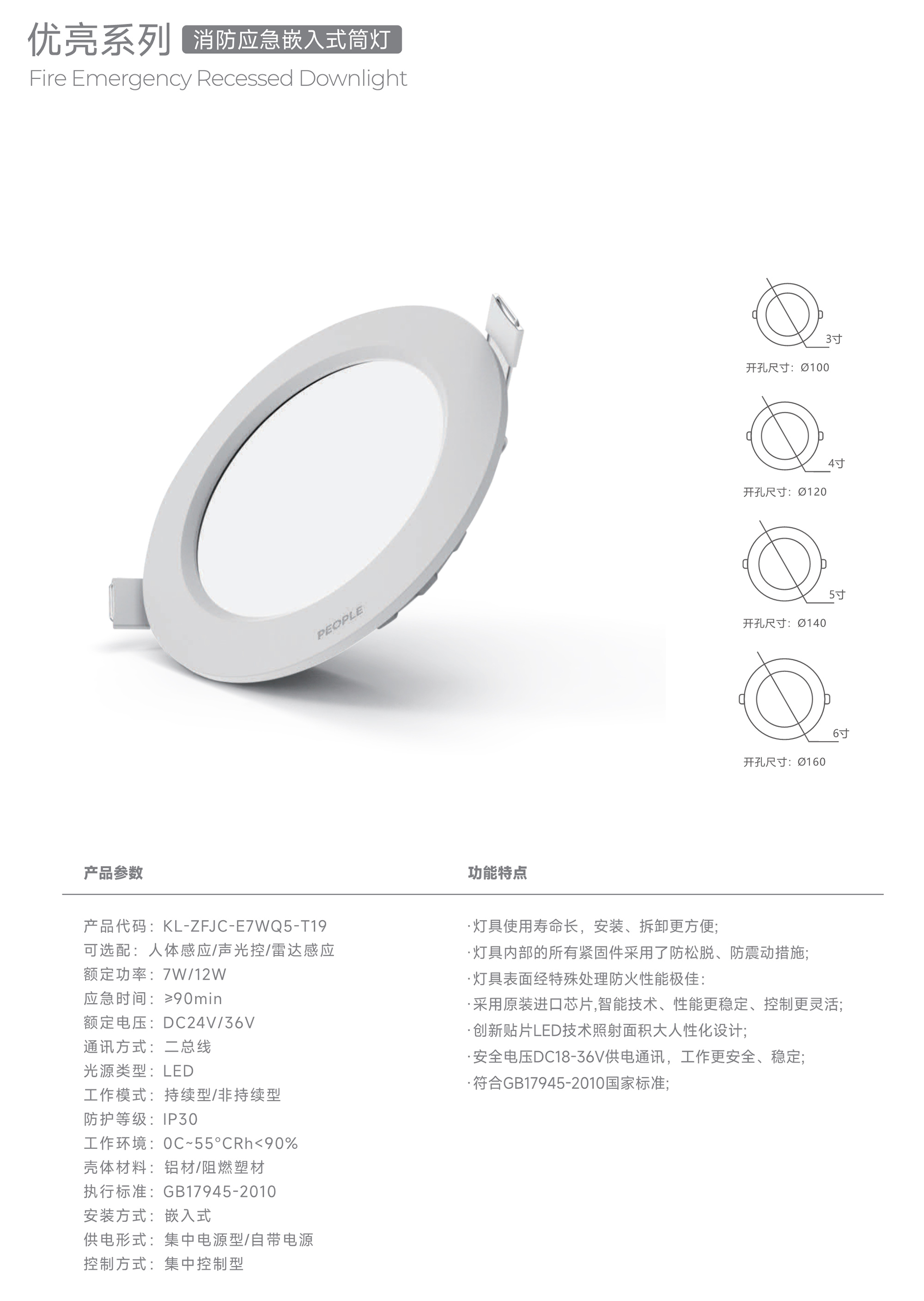 优亮系列消防应急嵌入式筒灯KL-ZFJC-E7WQ5-T19