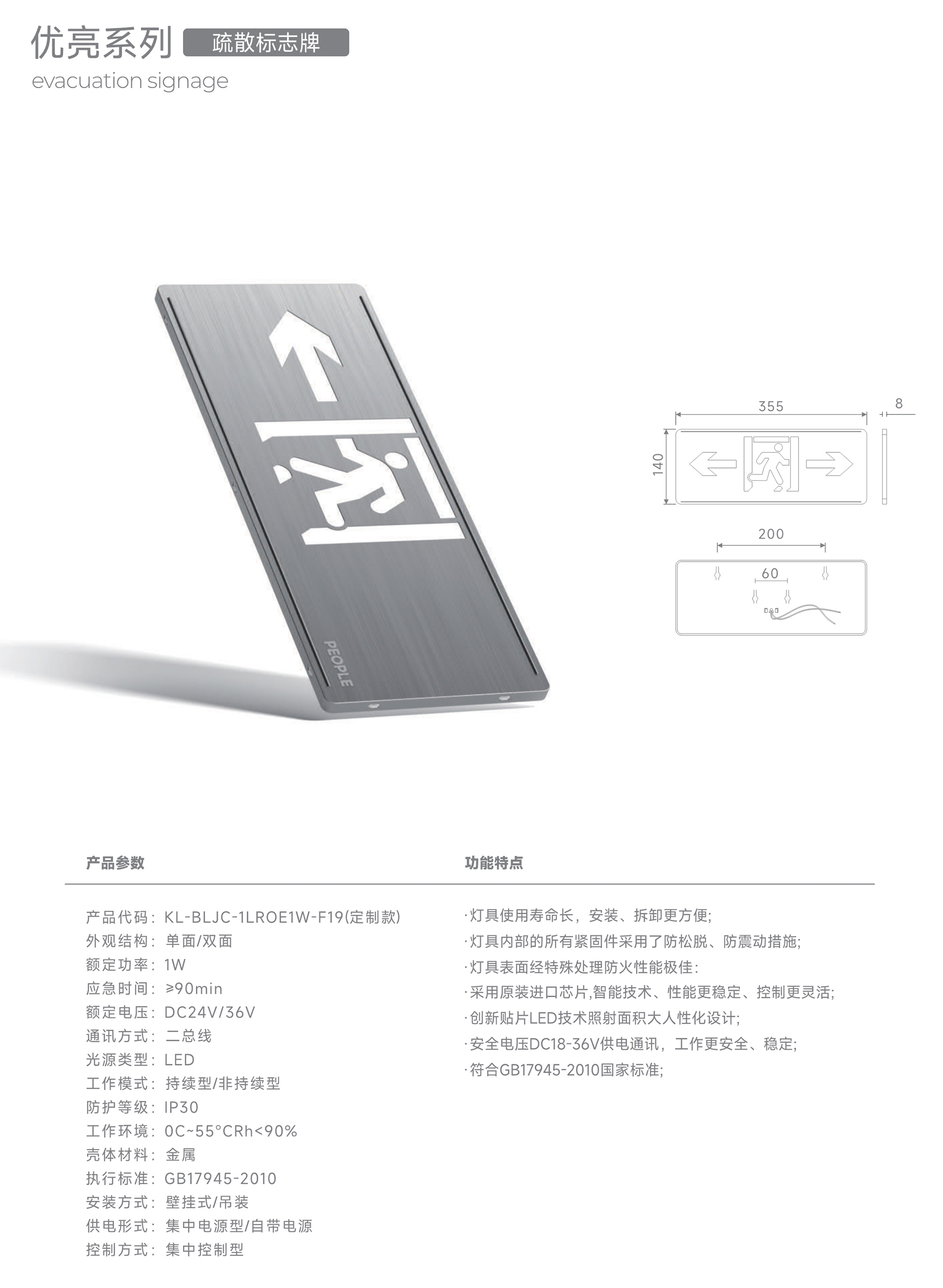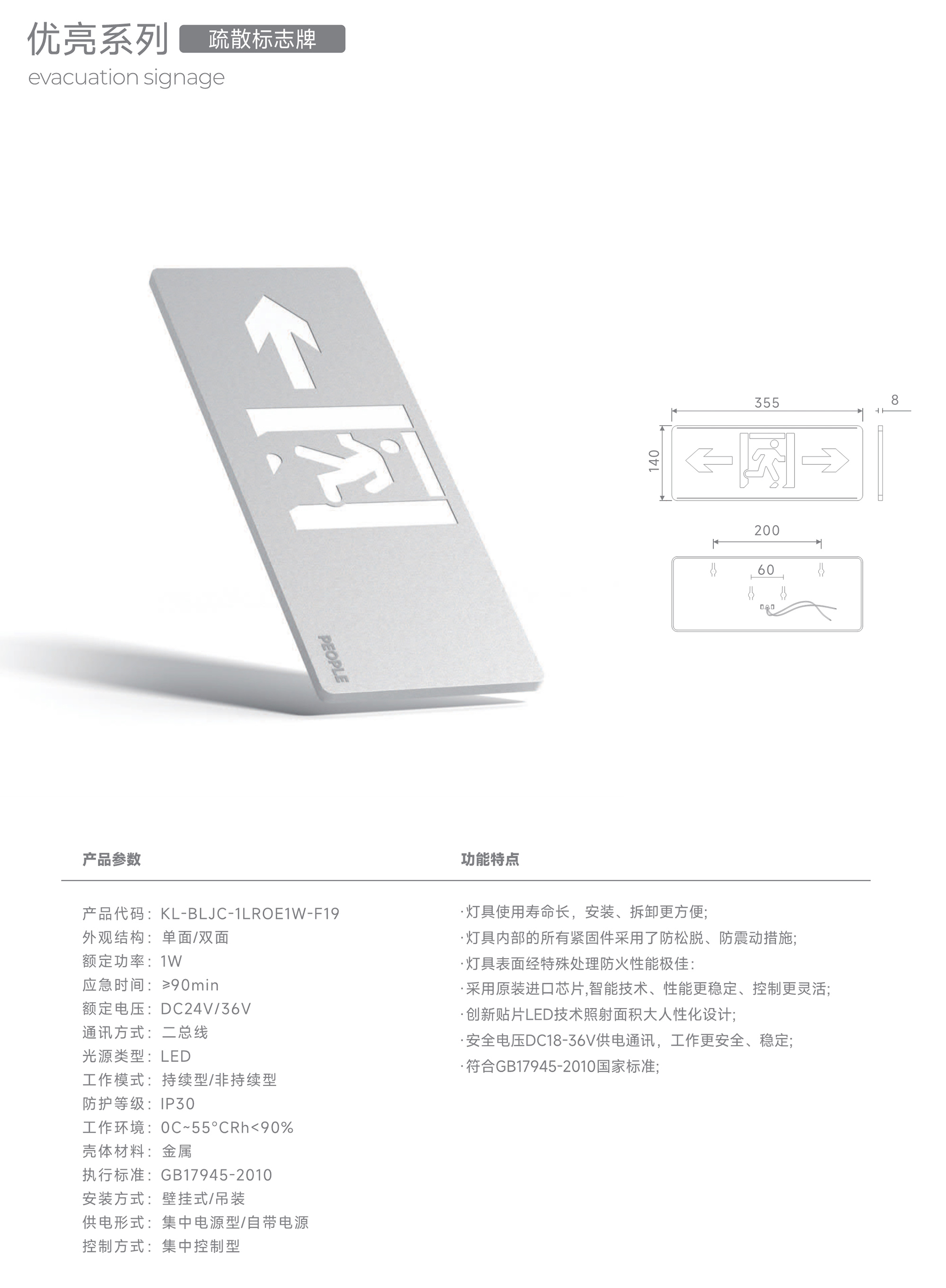 优亮系列疏散标志牌 KL-BLJC-1LROE1W-F19