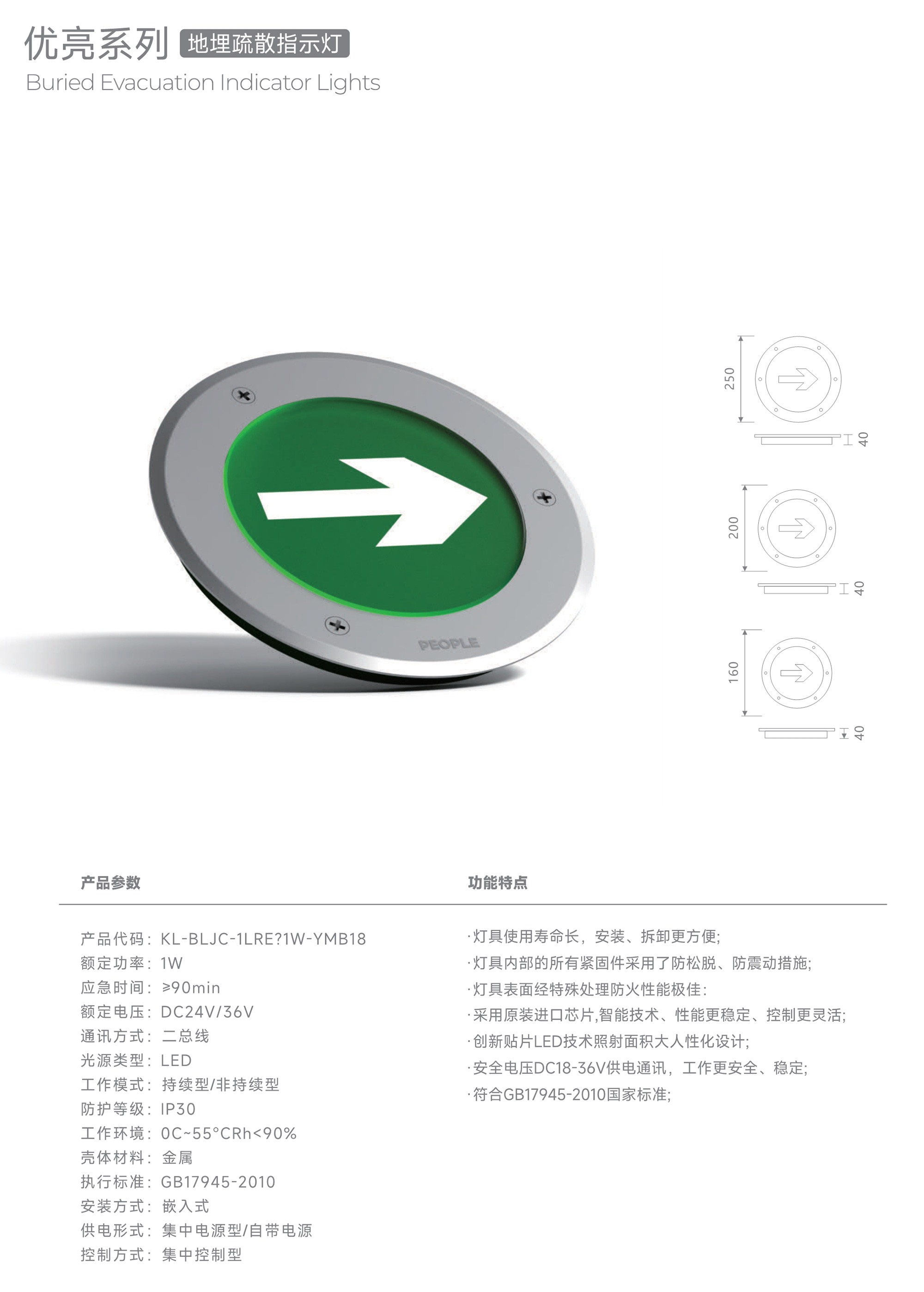 优亮系列地埋疏散指示灯KL-BLJC-1LRE1W-YMB18