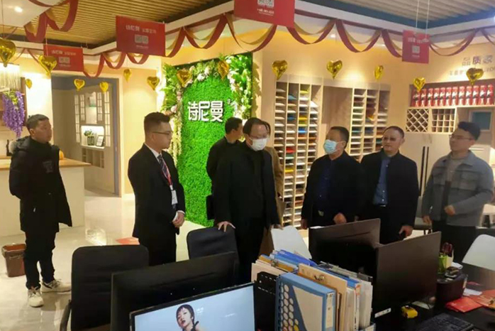 3月4日下午,荆门市工商联主席陈刚、副主席张国琴、会员联络部部长任诗超和荆门市非公有制企业投诉服务中心主任李成同志一行莅临人民万福国际商贸城走访调研。荆门市装饰建材流通协会会长赵文斌等陪同调研,人民万福国际商贸城副总经理吴尊华接待来访。
