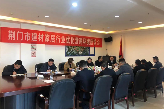 陈刚主席一行首先对人民万福·欧亚达家居馆、人民万福·欧亚达家居建材城各门店进行了参观走访,与园区内商家亲切交谈,了解门店经营情况及遇到的问题困难,走访结束后与荆门市装饰建材流通协会成员及园区商户代表开展了座谈交流。