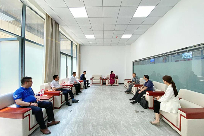 考察结束后,双方于人民新谷直播电商新城接待室举行了座谈会。座谈会上,人民汽车城总经理李勇飞首先对肖付华部长一行到来表示欢迎,并就直播电商行业发展趋势、项目建设以及蔡甸区新联会直播电商网络分会等事宜进行深入探讨和交流。