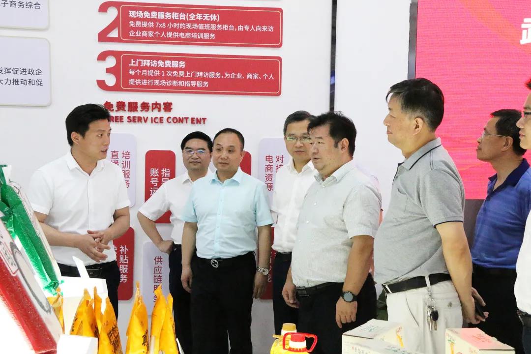 随后,胡朝晖主席一行先后来到人民新谷直播电商新城直播间、商学院、产品供应链进行实地参观指导,详细了解人民新谷直播新城项目进程、运营模式、商家直播销售情况,及蔡甸区农副产品供应链体系。并对直播电商配套、商家扶持培育、直播人才培养等方面工作给予高度评价。
