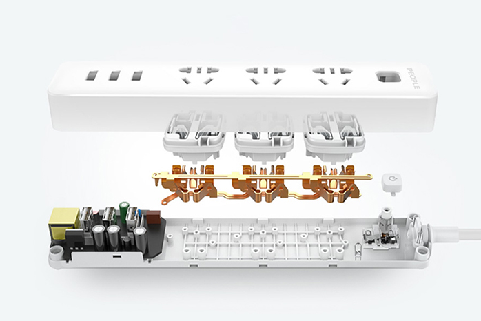 每个插孔都有独立的安全门,当手指或金属物体垂直插入时,无法直接接触导电铜件,?;ざ?,贴心呵护家人安全。