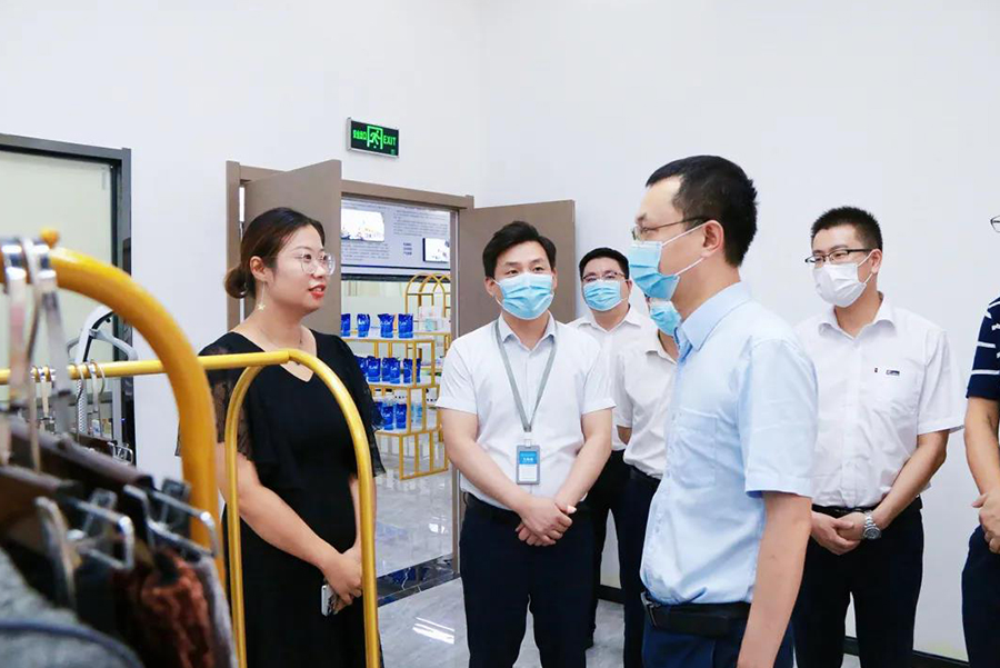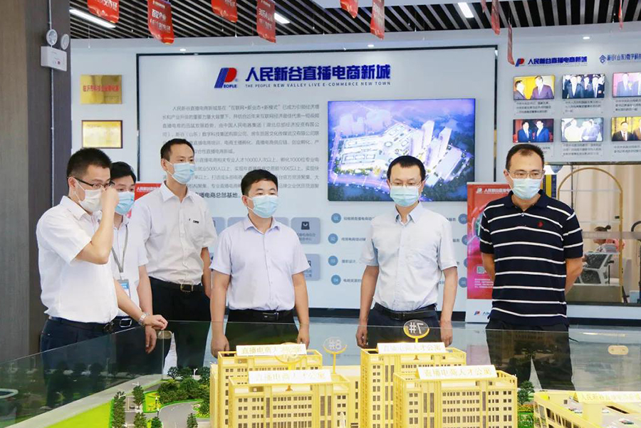 调研过程中,黄思一行实地参观了人民新谷直播电商新城选品展厅、大数据平台、5G演播厅、商学院等公共服务区域,深入了解项目规划建设、运营服务体系、入驻网红主播及企业孵化、人才培训等相关情况。并对项目运营现状予以充分肯定,及对下一阶段的整体工作提出了相关要求和期望。