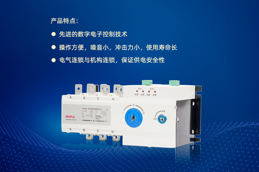 RDH5DS系列双电源自动转换开关可根据需求或具体电路情况进行两路电源之间的切换选择。本产品具有自投自复、市电-市电、市电-发电以及消防强切功能。