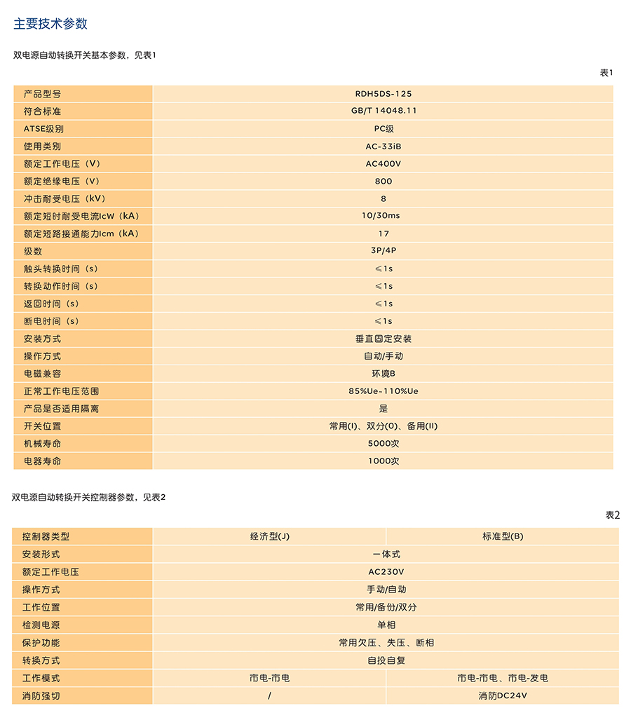 RDH5DS系列双电源自动转换开关,它适用于交流50Hz、额定工作电压400V、额定工作电流125A及以下的供电系统。