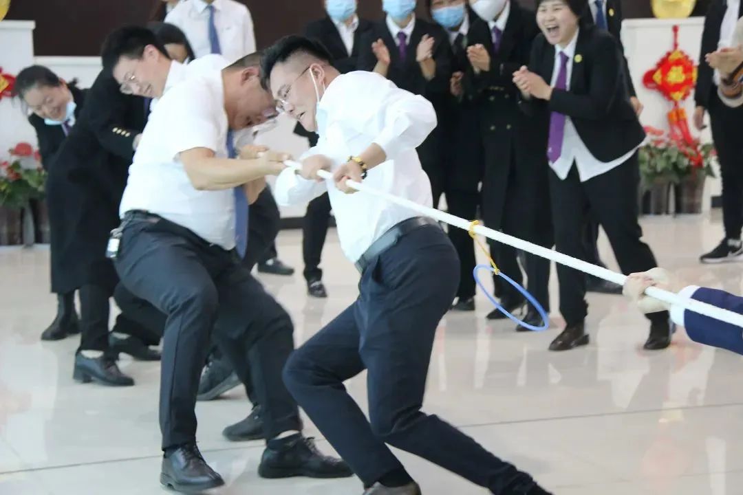 庆典活动上,人民汽车城(武汉)项目全体员工齐唱生日歌,祝愿集团发展再创辉煌。同时还准备了拔河比赛、你画我猜、七拼八凑、套圈圈等丰富有趣的互动游戏,大家踊跃参与,积极表现,赢取丰厚奖品,更在活动中展现了个人风采、团队协作默契,增加了员工之间的交流,提升了团队凝聚力。