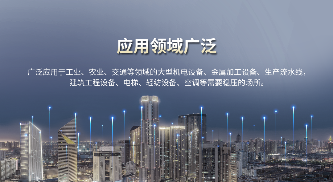 可广泛应用于工业、农业、交通等领域的大型机电设备、金属加工设备、生产流水线,建筑工程设备、电梯、轻纺设备、空调等需要稳压的场所。