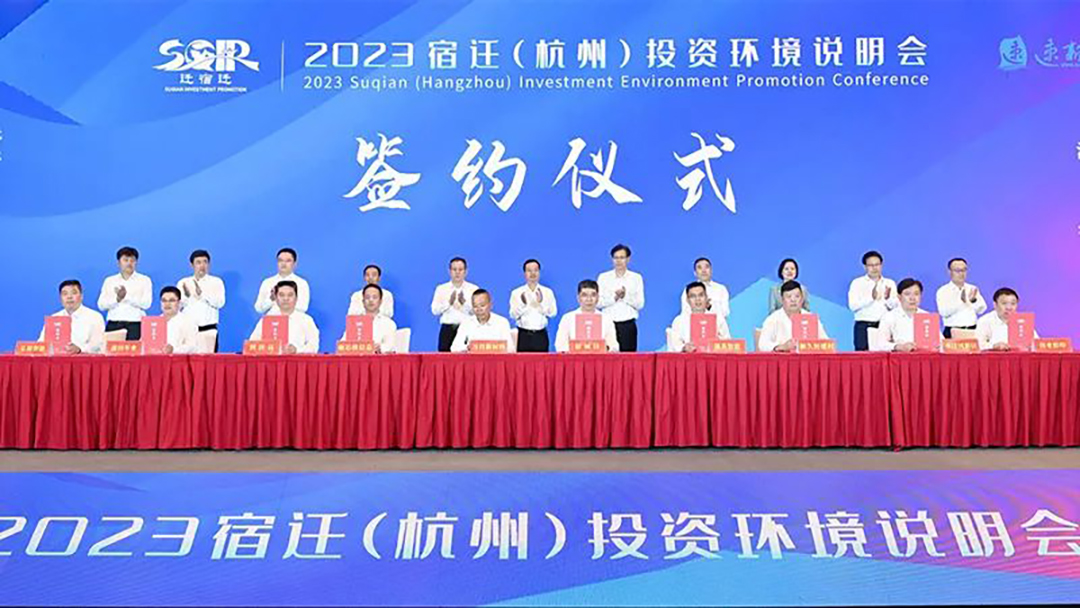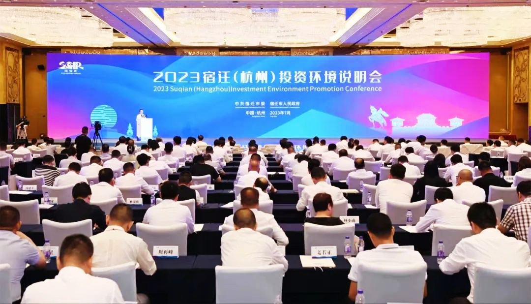 7月9日,2023宿迁(杭州)投资环境说明会在杭州成功举行。会上共签约24个项目,协议总投资381.2亿元。市委副书记、代市长刘浩出席活动并致辞,来自杭州及周边地区的220余位企业家参加活动,人民万福集团董事长郑纬宇受邀参加本次活动。