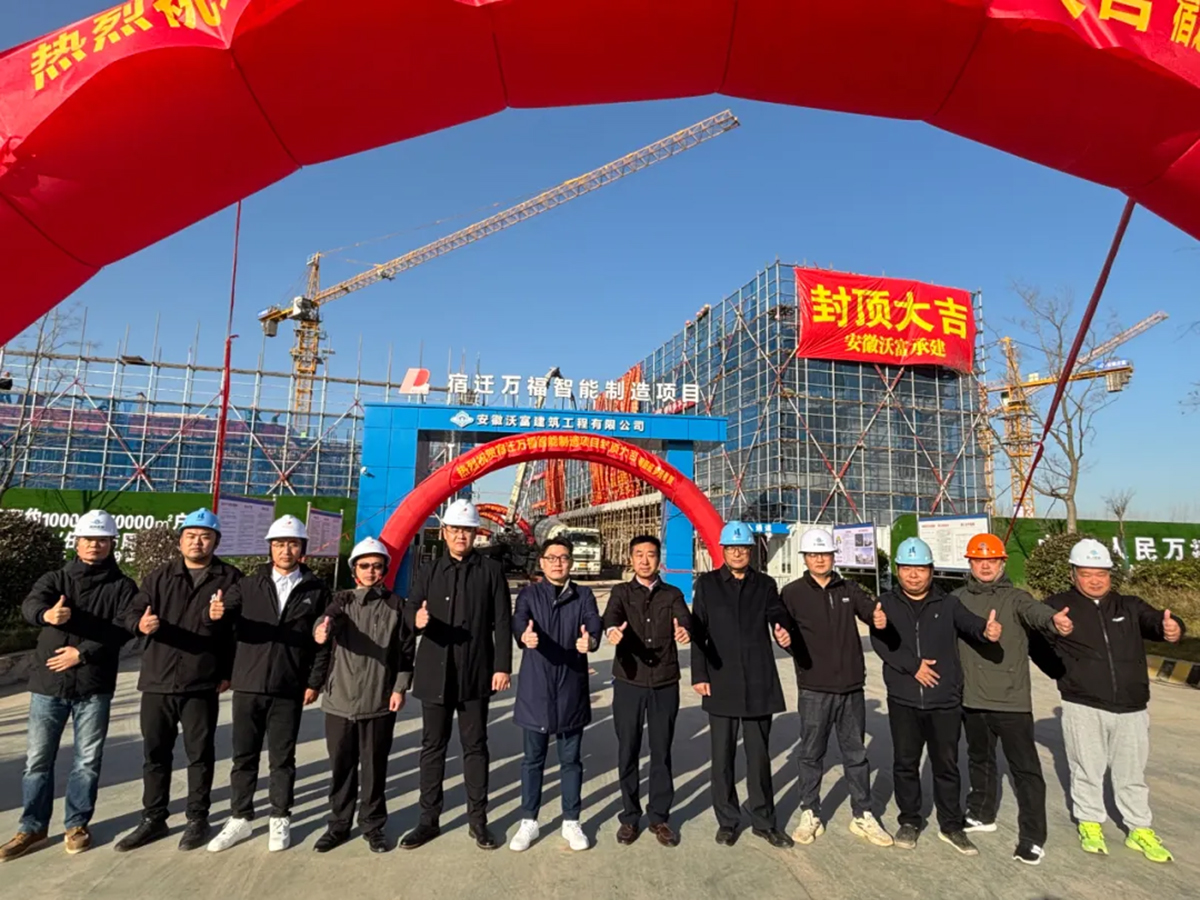 当天,人民万福集团江苏区域总经理赵宁等相关领导出席活动,共同见证项目封顶,并对人民万福(宿迁)智能制造园的未来发展表示祝福。 赵宁总强调:封顶不是终点,而是下一个节点的开始,交付才是我们的目标!让我们共同期待人民万福(宿迁)智能制造园早日竣工、开园,见证它在宿迁这片热土上绽放出更加璀璨的光彩,助力宿迁在智能制造的浪潮中乘风破浪、一往无前!