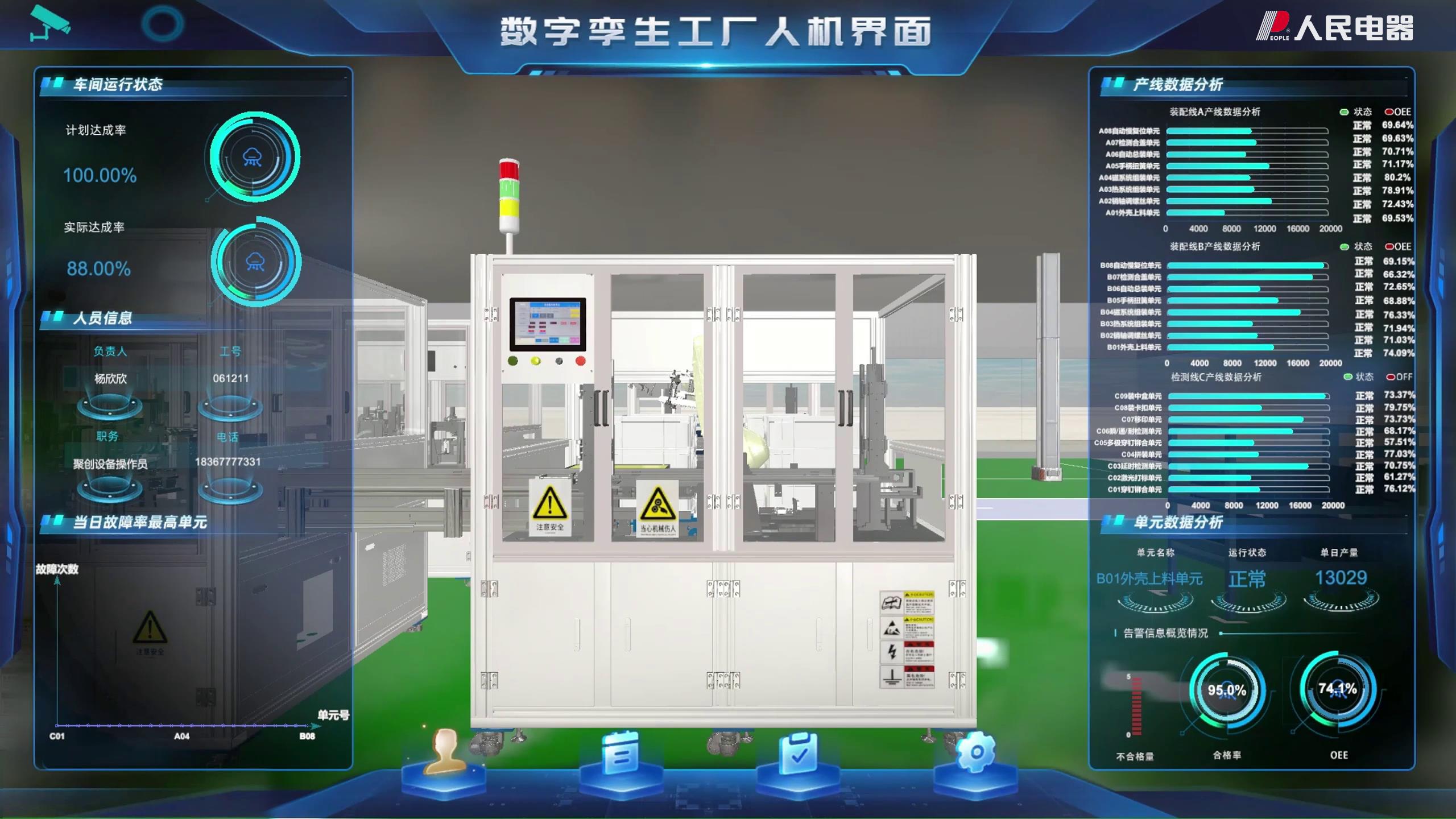 这条低压断路器柔性生产线,作为项目的核心成果,被成功应用于人民电器智能工厂内,成为其重要组成部分。该生产线将人工操作与自动化紧密结合,显著提升了断路器制造的效率和可靠性,为智能工厂的高效运转提供了有力支撑。同时,通过开发全尺寸数字孪生车间系统,企业能够利用沉浸式虚拟仿真平台进行远程监控、智能诊断以及故障排除,进一步增强了企业的运营管理水平,推动了制造业的数字化、智能化转型。