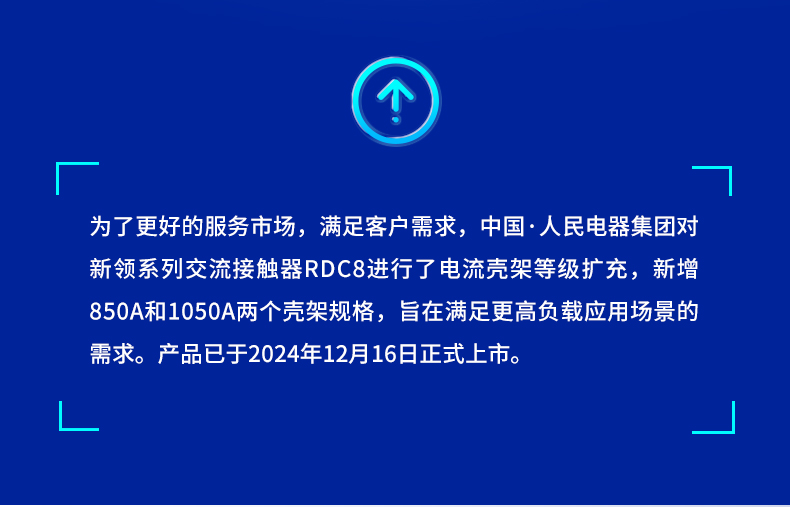 通知丨人民电器RDC8交流接触器新增850A和1050A壳架