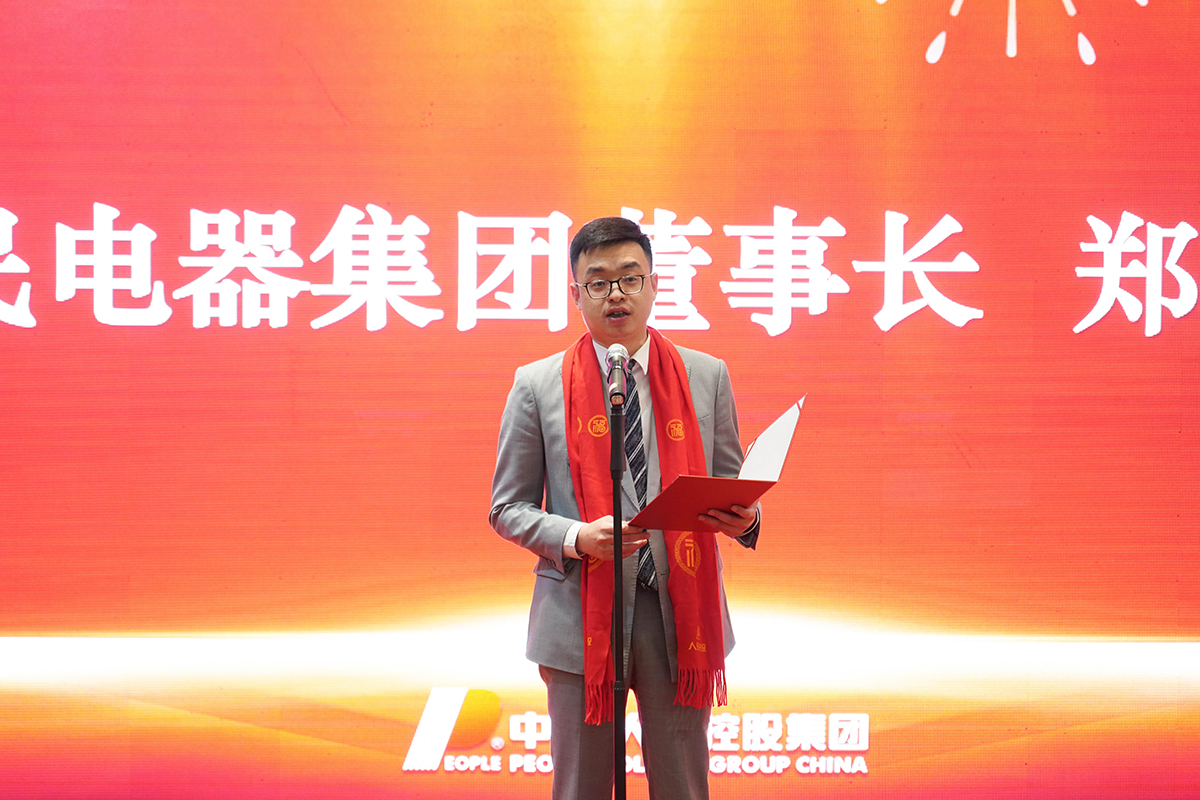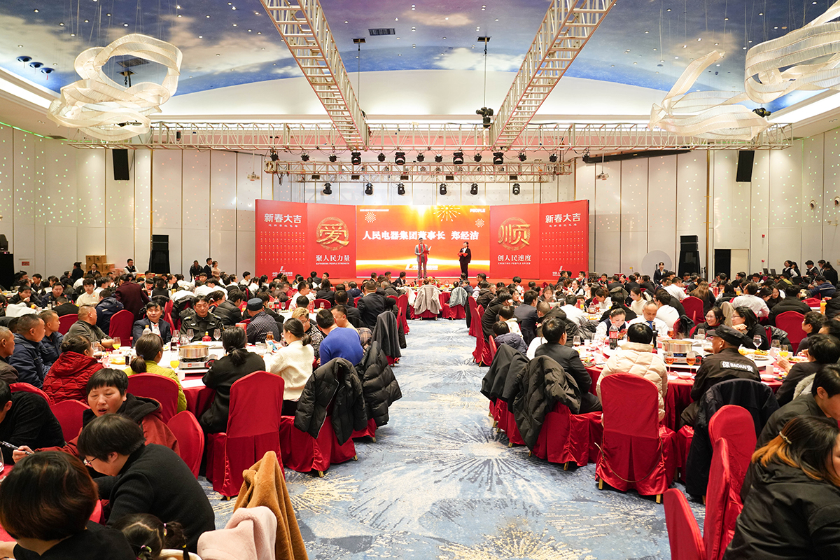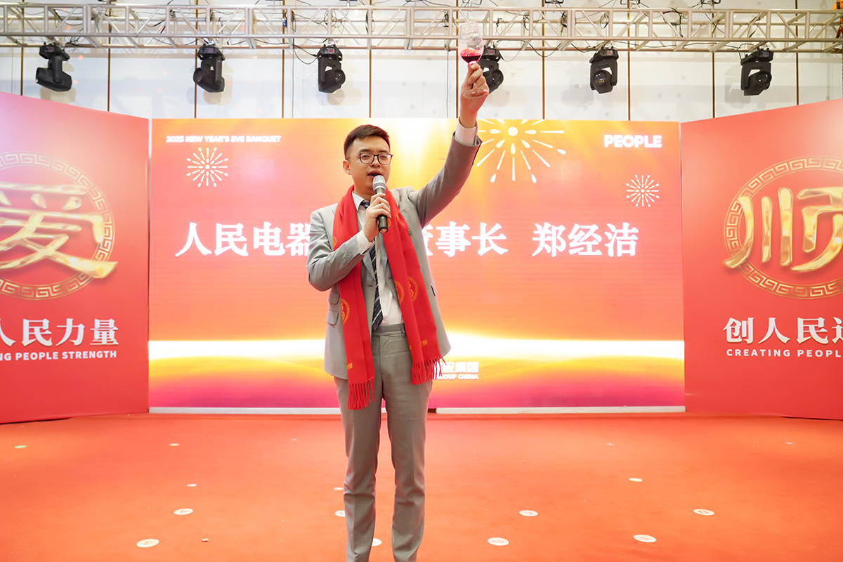 人民电器集团董事长郑经洁在晚宴上发表了热情洋溢的祝酒词。他回顾了过去一年集团在市场竞争中取得的辉煌成就,并对全体员工的辛勤付出表示衷心的感谢。郑经洁强调,新的一年,集团将继续秉承"团结、拼搏、开拓、创新"的企业精神,深化技术创新,优化管理结构,推动产业升级。他号召全体员工在新的一年里,以更加饱满的热情和昂扬的斗志,迎接每一个挑战,实现每一个梦想。