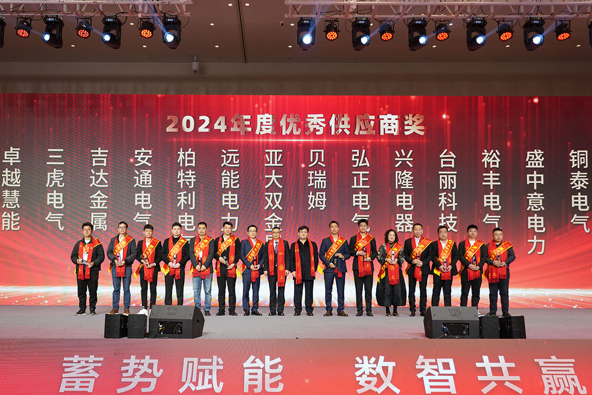 郑经洁向大会致辞。他回顾了2024年人民电器集团在技术创新、标准引领、市场入围、智能制造和数字化转型等方面取得的显著成绩,并展望了2025年的发展战略。郑经洁指出,未来人民电器集团将继续深化跨界融合,拓展生态合作,加速从传统产品销售向系统集成方案服务商的转型,推动智能电网、新能源等领域的创新发展。