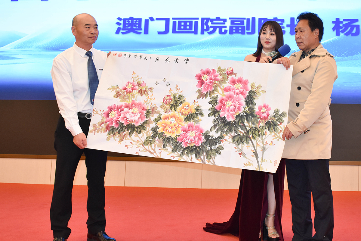 此外,中国书法家协会会员、云澳书院院长唐明全,澳门画院副院长杨勇等文化艺术界知名人士在大会上,以赠送精心创作的书画作品形式,点赞人民电器。周元枢代表人民电器集团接受了这份珍贵的艺术赠礼,并回赠了具有集团特色的纪念品。