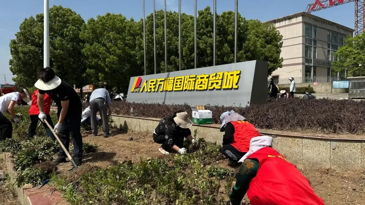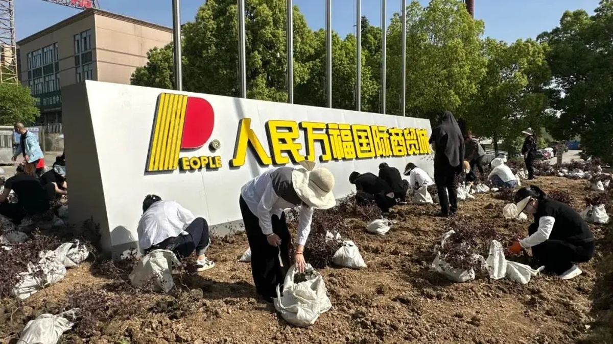 2025年4月15日,人民万福国际商贸城以“绿意聚心力,焕新东大门”为主题,成功举办首届绿植共建活动。人民万福国际商贸城总经理唐俊容、监事长郑正拓、副总经理吴尊华、总经理助理王金石等管理层,带领全体员工分为四组,共同在东大门栽种绿植,以行动践行绿色发展理念,为区域形象升级注入新活力?。
