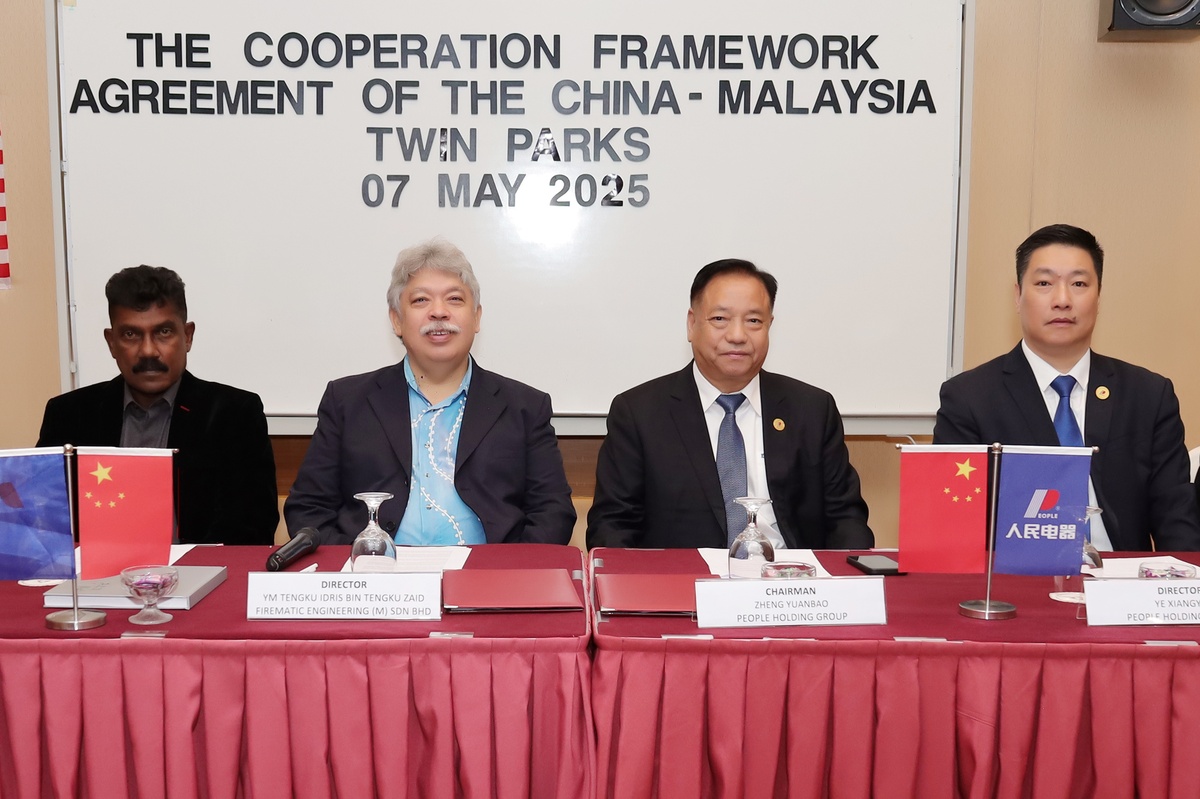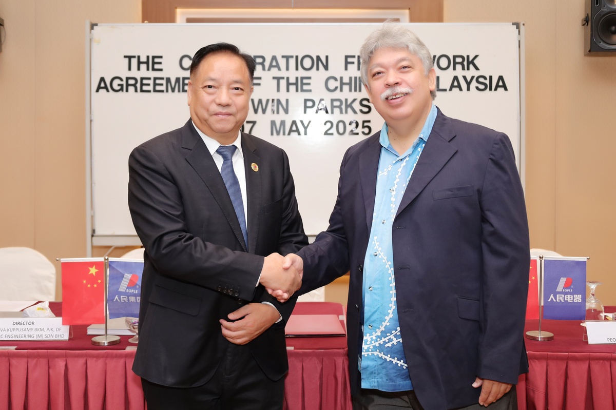 5月7日,中国·人民控股集团董事长郑元豹率队赴马来西亚吉隆坡,与马来西亚工程领域领军企业Firematic Engineering (M) Sdn Bhd正式签署合作框架协议。在马来西亚王室王子腾古·伊德里斯、马来西亚科学院院士萨勒赫及双方企业高层的共同见证下,中国·人民电器集团进出口公司总经理叶向宇与Firematic Engineering董事长吉瓦·库普普萨米代表双方签字。