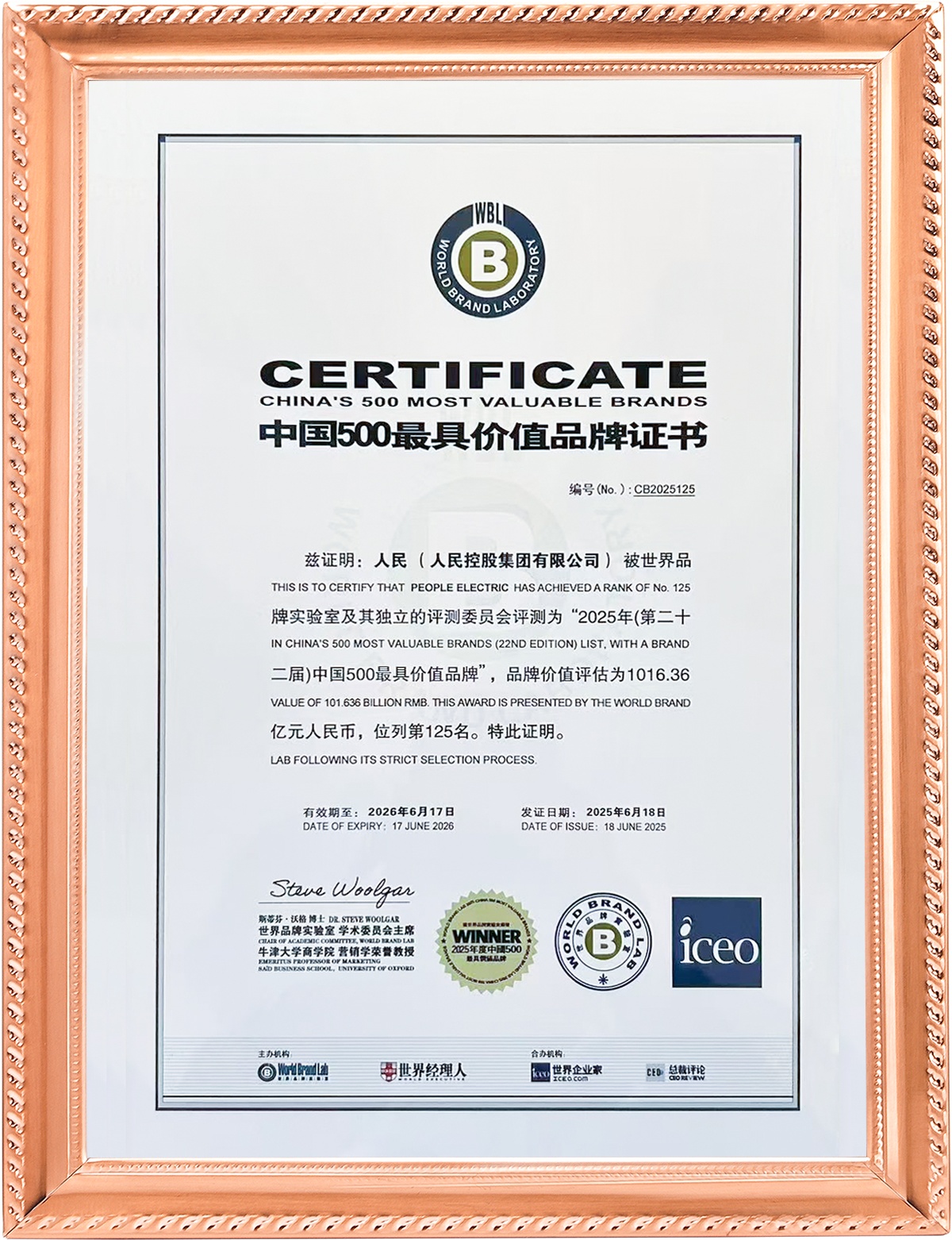 在第22届世界品牌大会上,世界品牌实验室发布的2025年《中国500最具价值品牌》榜单揭晓,中国·人民控股集团旗下核心品牌“人民”以1016.36亿元的品牌价值位列第125名,较去年大幅提升100多亿元,连续多年稳居中国工业电气领域品牌价值榜首。