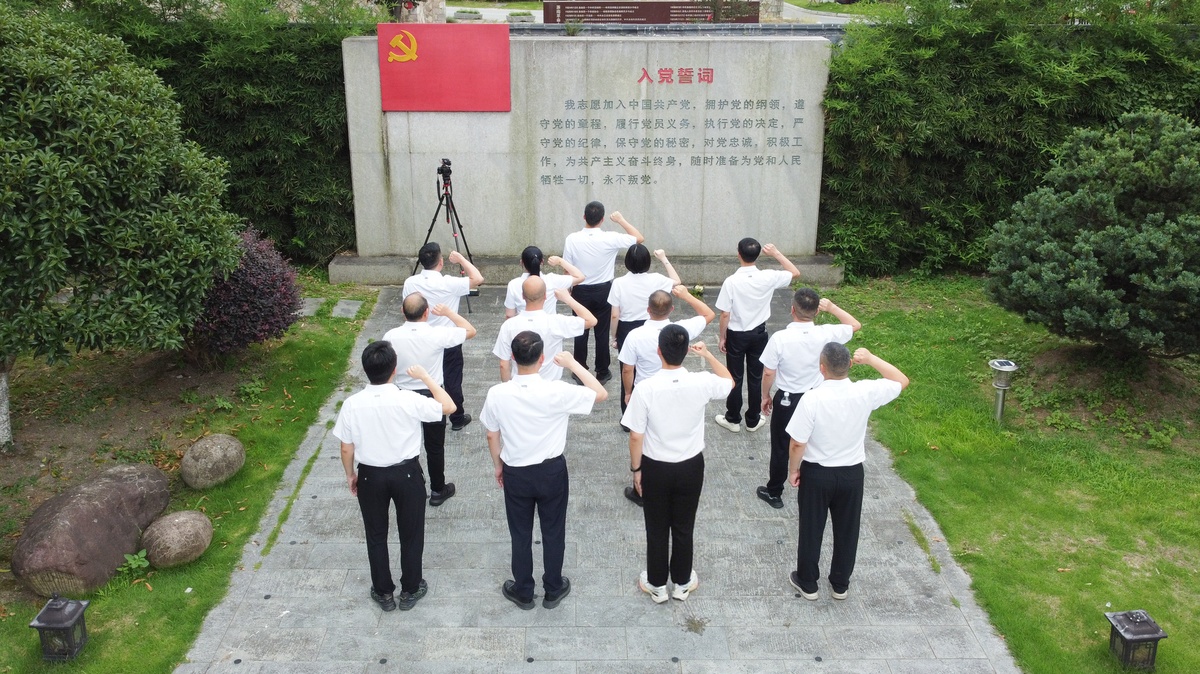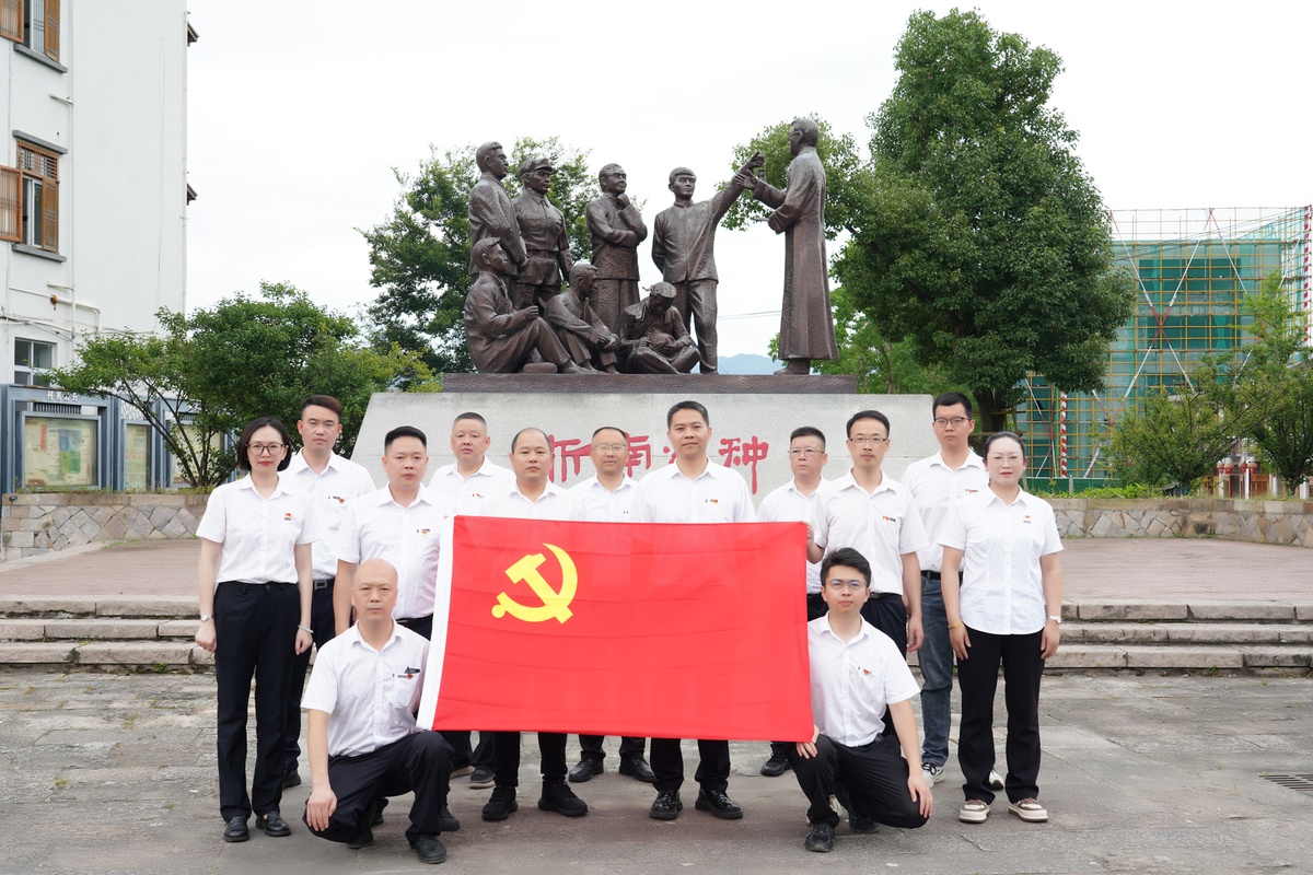 在纪念馆前,集团党委书记徐文通带领全体党员庄严重温入党誓词。铿锵有力的誓言回荡在红色教育基地,激励着每一位党员不忘初心、牢记使命,在新时代新征程中勇担责任、奋发作为。