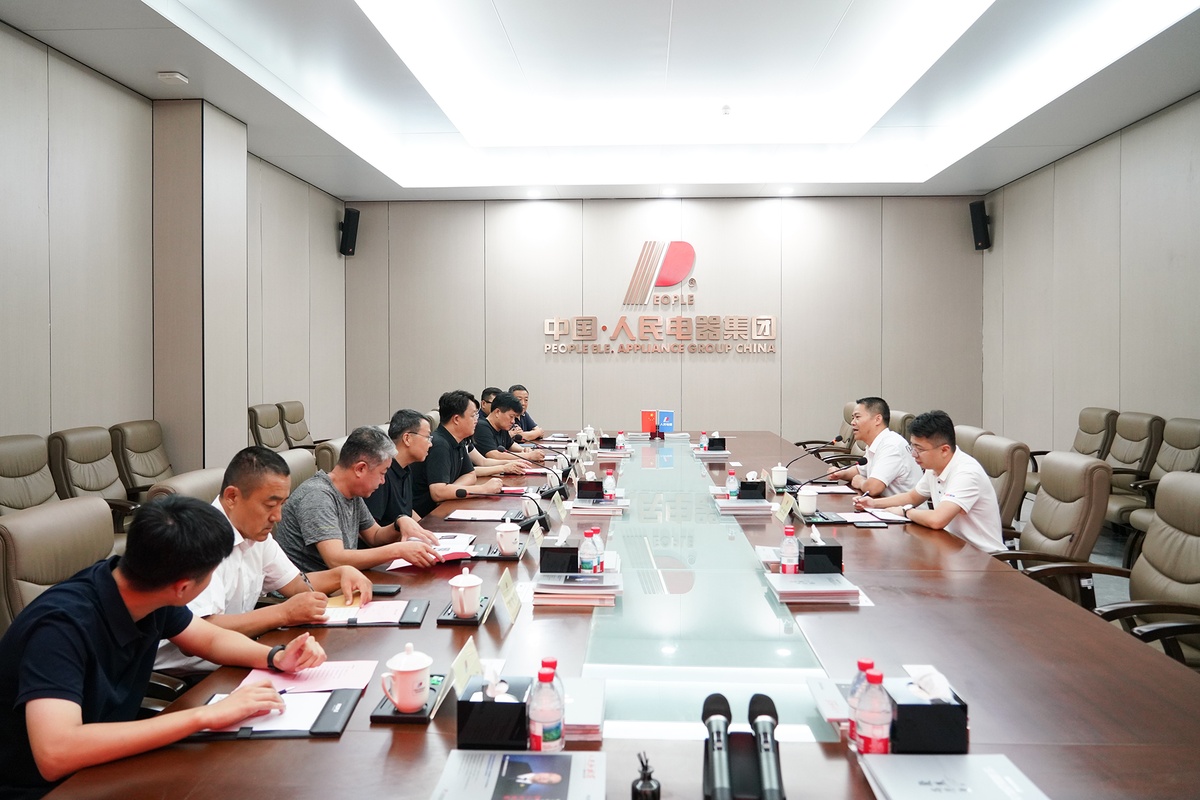 座谈会上,人民电器集团党委书记徐文通对张立波一行的到来表示热烈欢迎。他指出集团经历近40年的发展历程,目前形成了电器、万福、产业、供应链、金控、能源六大板块协同发展的现代化企业集群。其中人民电器集团作为核心企业,在全国布有六大制造基地;人民万福集团则专注工业地产,以"带产业落地"模式在多地布局项目。此外,他还介绍了其他板块的业务特色与发展方向。