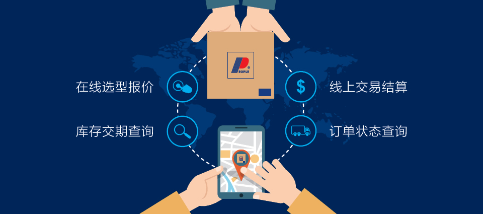 A、售前选型软件在线选型报价支持; B、全系列产品库存状态及交期在线查询; C、客户端自主线上下单交易及结算; D、订单生产状态及配送信息实时查看